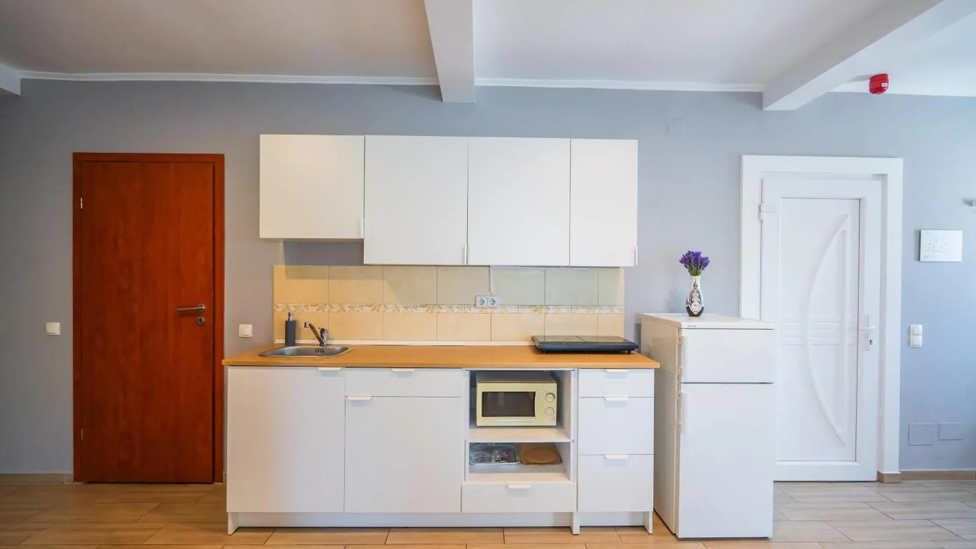The units at this apartment have a microwave, an electric kettle and a fridge.